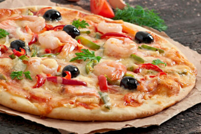 $22.99Delight in our Pizza Fritti Di Mare, topped with a medley of fresh seafood including shrimp, calamari, and mussels. Enhanced with garlic, cherry tomatoes, and mozzarella cheese on a thin, crispy crust, this pizza offers a taste of the ocean.